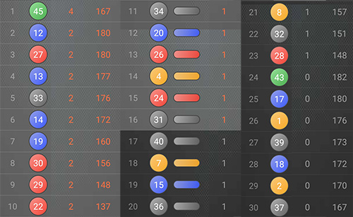 5주 당첨 횟수 0인 숫자는 5주간 미출현 번호로 알려져 있습니다.