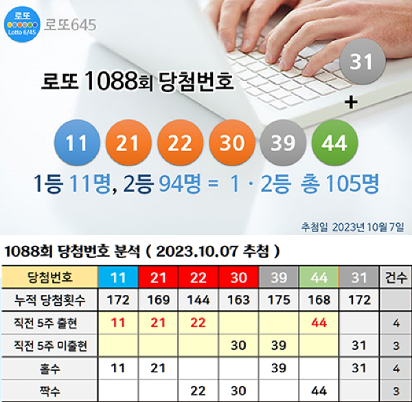 지난주 발표된 1088회 로또 당첨번호 조합과 어떤 번호들이 당첨번호에 나왔는지 분석한 내용입니다.
