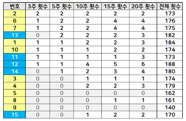 최근 5주간 구간별 출현 비율 검토